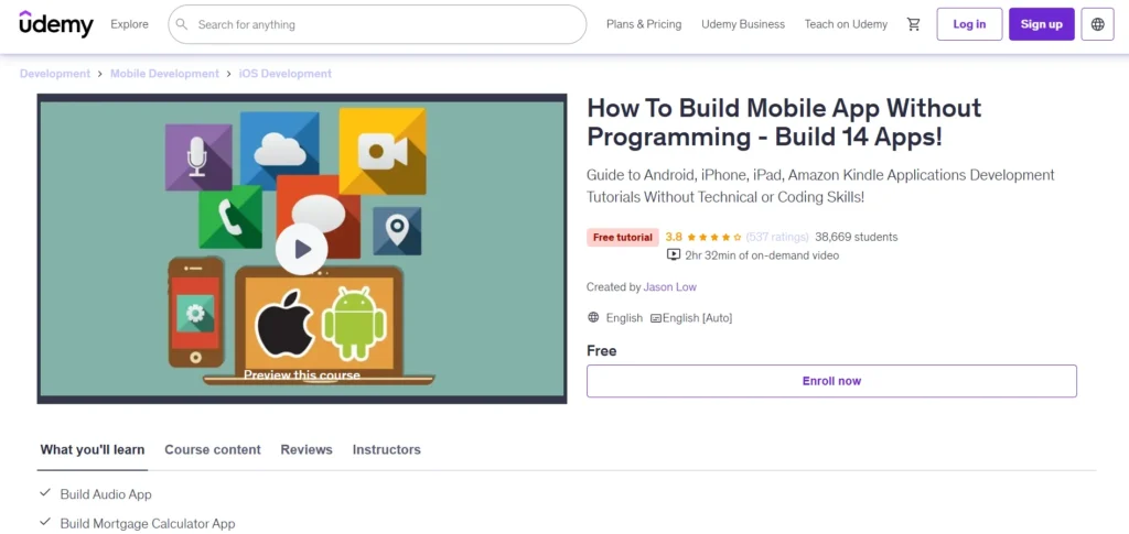 Udemy offers a variety of courses that teach you how to build mobile apps without writing code. These courses typically focus on different no-code platforms, so it’s important to choose the one that aligns with your needs.