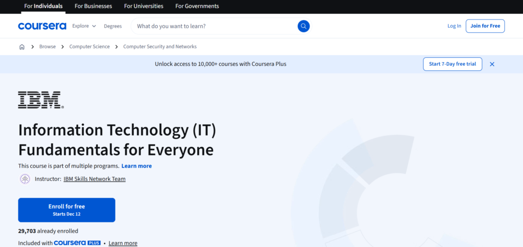 - Wide Range of Courses and Specializations: Coursera covers every aspect of IT, from programming and networking to cloud computing, cybersecurity, and data analysis. Whether you’re a complete beginner or looking to specialize in a certain area, Coursera has something for you.